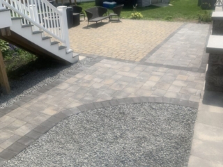 We recently did a lot of work on the exterior of our home and wanted to finish off the project with a stone patio. Jim was highly recommended by a friend, he helped us pick out some materials and we exchanged ideas. He created a design for the paver patio and fit in two granite steps that lead to the back yard. He finished with two beautiful walls, one to retain the patio space and another along our driveway. The finished product is awesome!